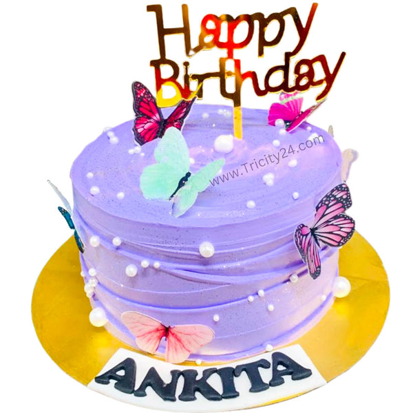 (M555) Purple Butterflies Blueberry Kids Cake (Half Kg).