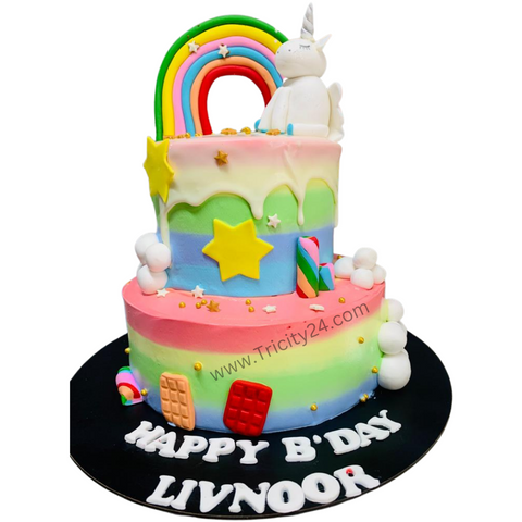 (M467) Unicorn Theme Two Tier Cake (2 Kg).