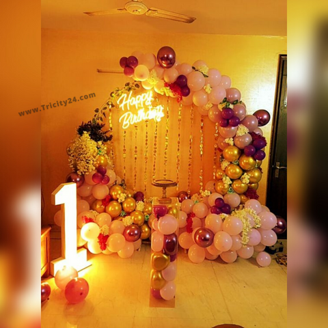 1st Birthday Baby Girl Theme Balloon Decoration (P576).