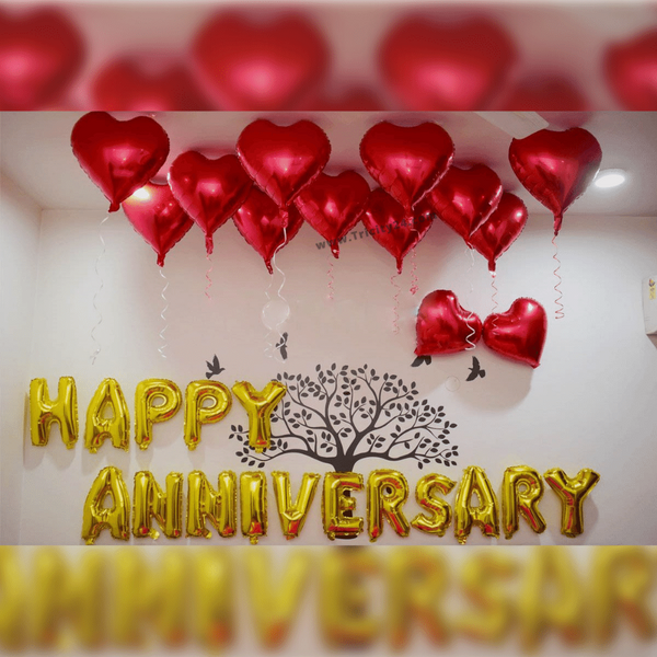 - 16 Pcs, Happy Anniversary Golden Foil Balloon Set,16"