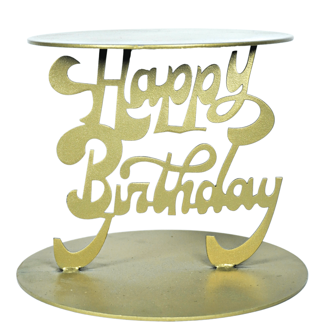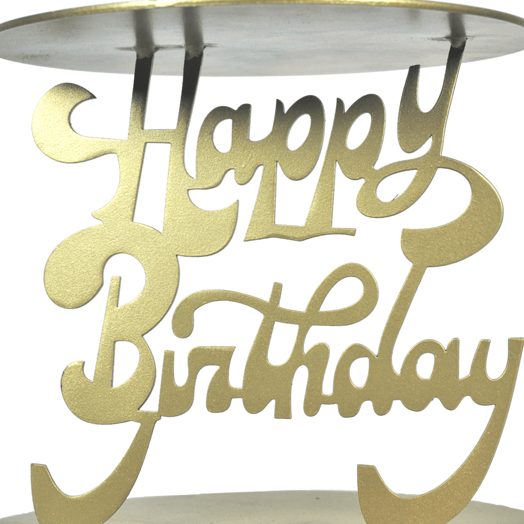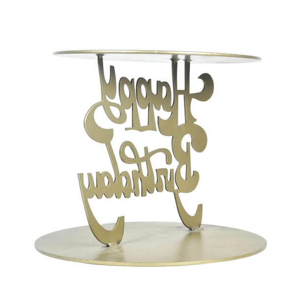 Golden Metallic Happy Birthday Iron Cake Stand (Rental) R37