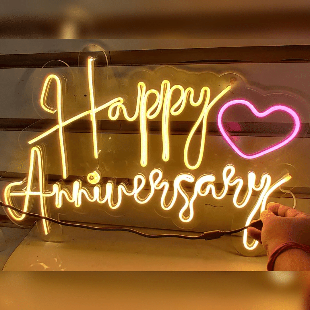 Light up your event with our "HAPPY ANNIVERSARY " Neon Sign Available For Rent.
