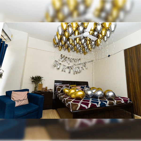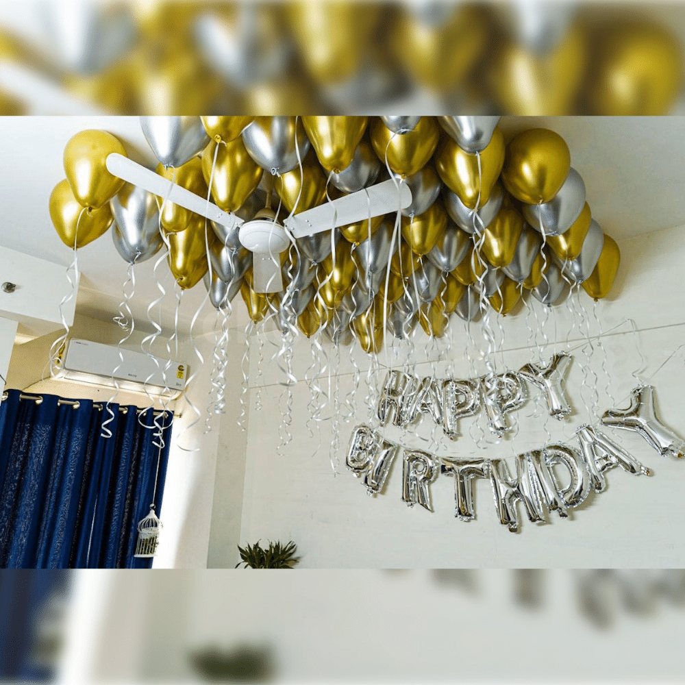Happy Birthday Golden And Silver Chrome Party Decoration (P33).