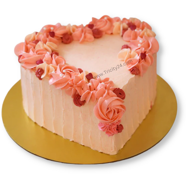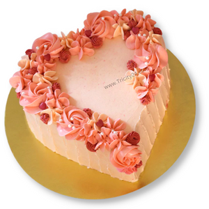 (M126) Orange Floral Heart Icing Cake (1 Kg).