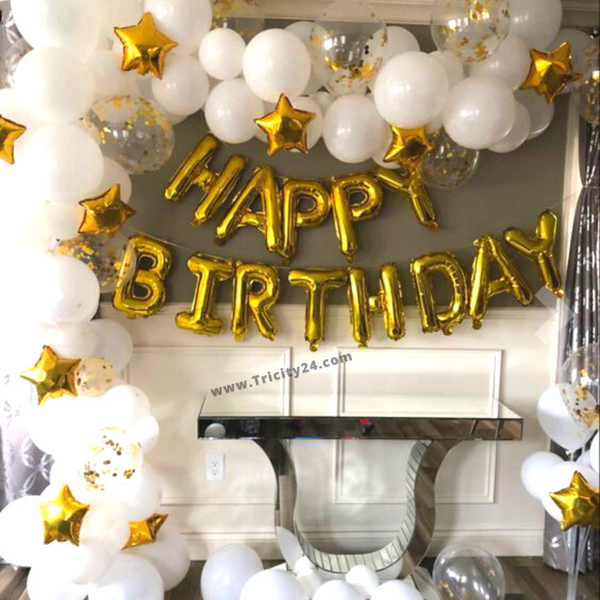 - 13 Pcs, Happy Birthday Golden Foil Balloons 16"