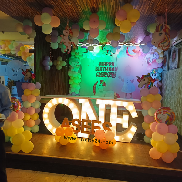 Unicorn Baby Girl Birthday Theme Balloon Decoration (P604).