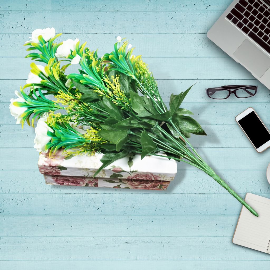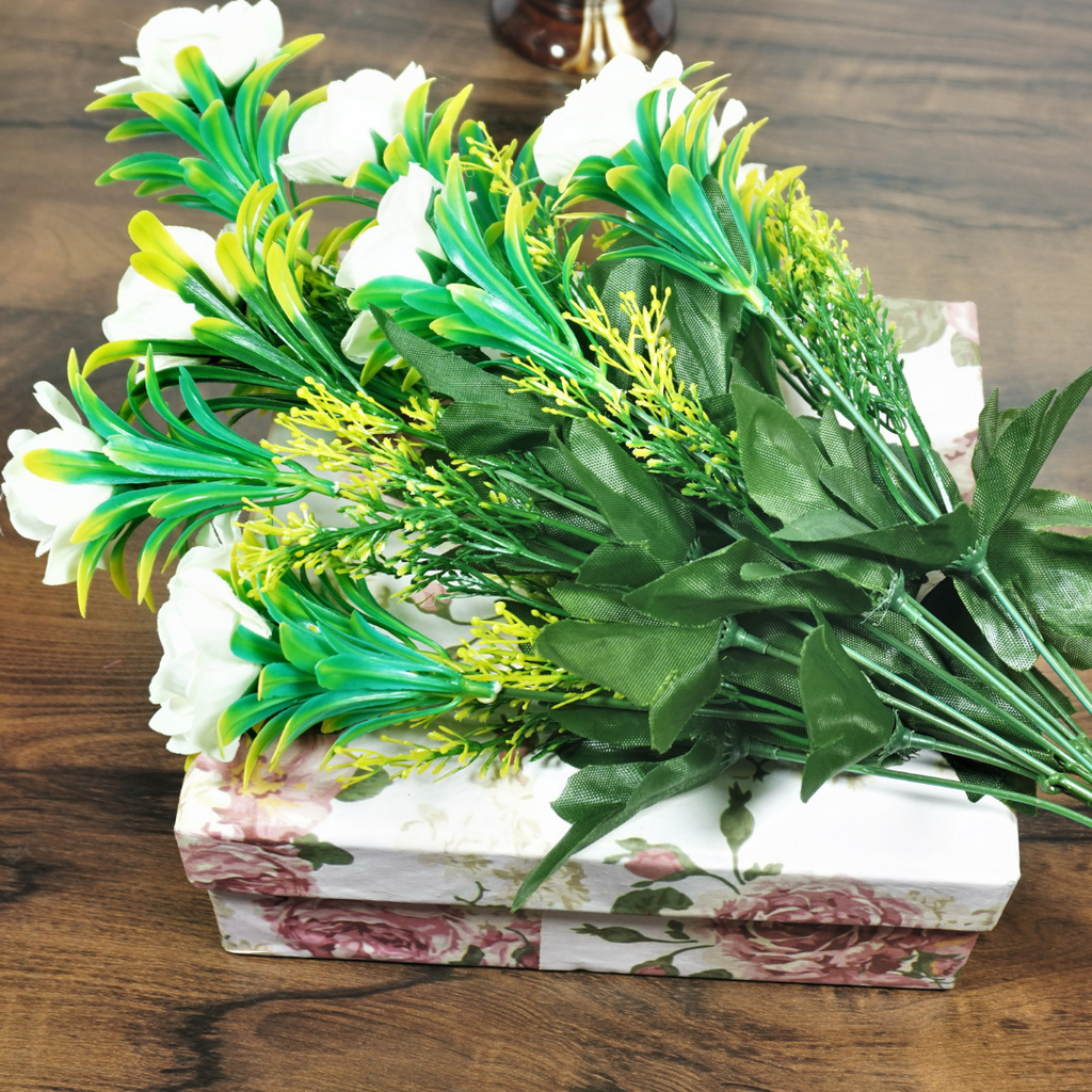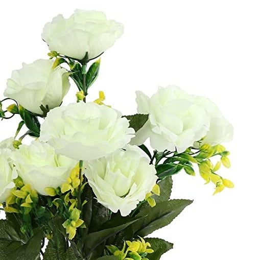 - Artificial Rose Flowers With Leaves Bouquet Of 12 Roses For Home Decoration